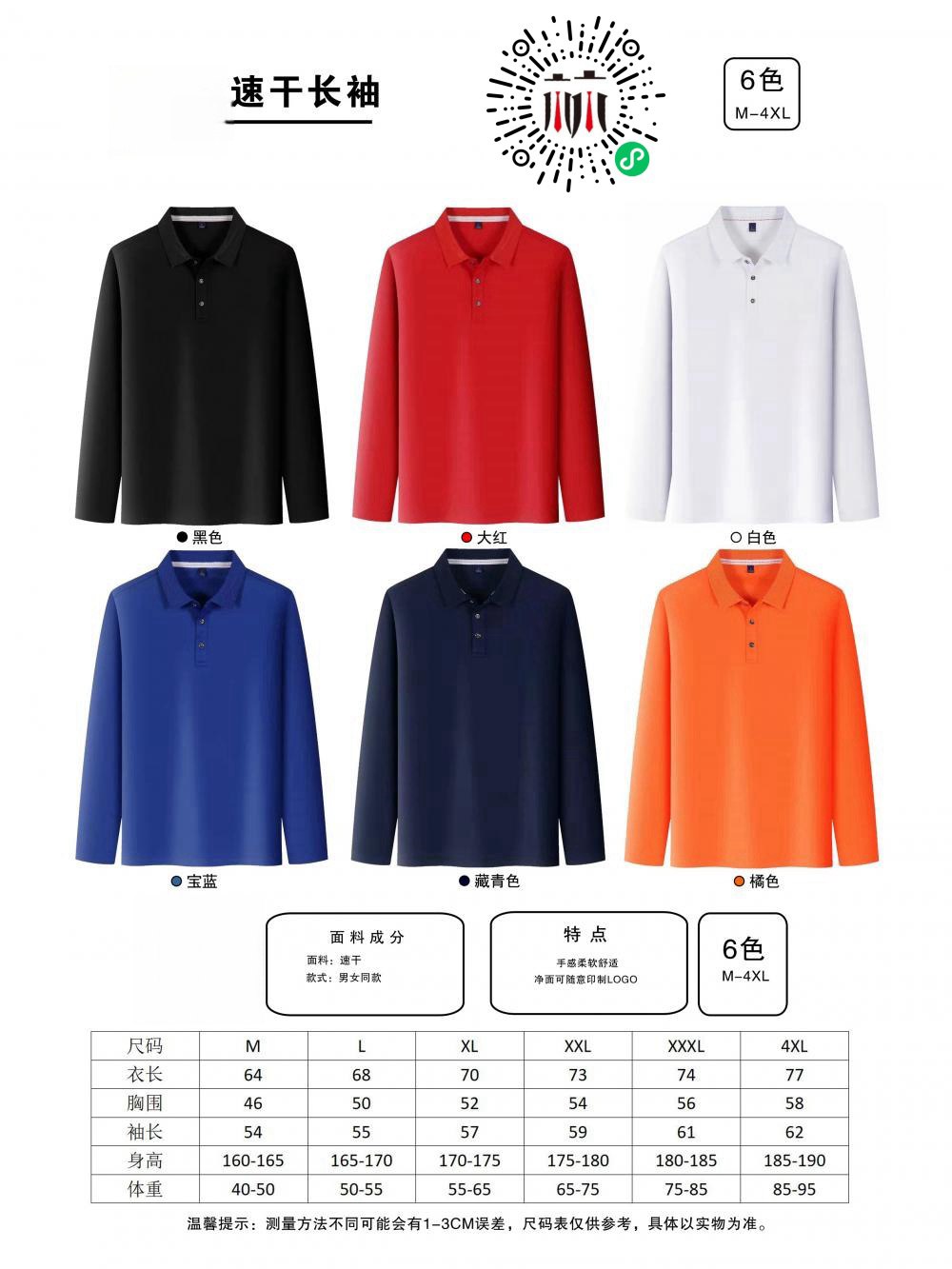 纯色翻领T恤,可随意印制logo,面料手感柔软舒适,