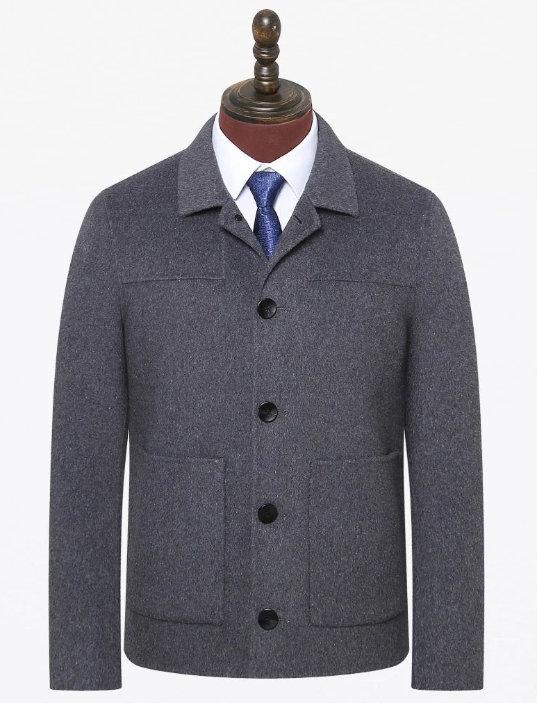 绵羊毛男士夹克衫,贴袋设计小方领是一种常见的设计风格,它可以给男士夹克衫增添一份时尚感和经典气息。小方领设计使得夹克衫的领口更加整齐和利落,同时也展现了一定的正式感。这种设计适合于各种正式场合或商务活..